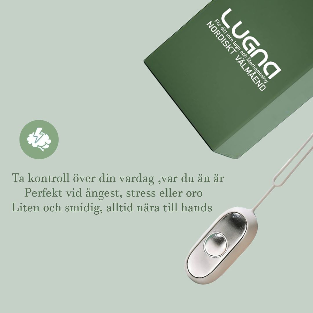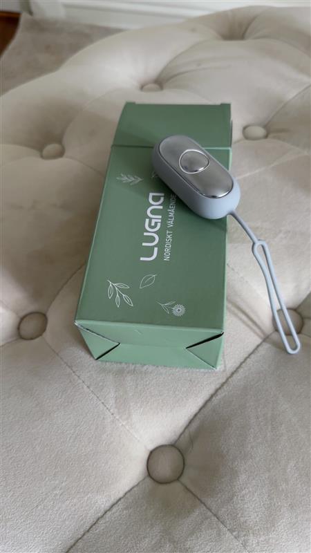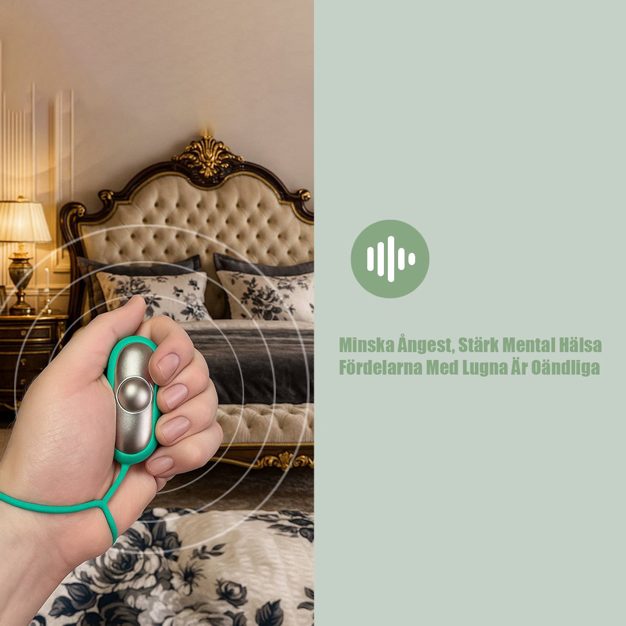Lugna stimulerar en specifik akupressurpunkt i handflatan (PC8) med små elektriska impulser.
